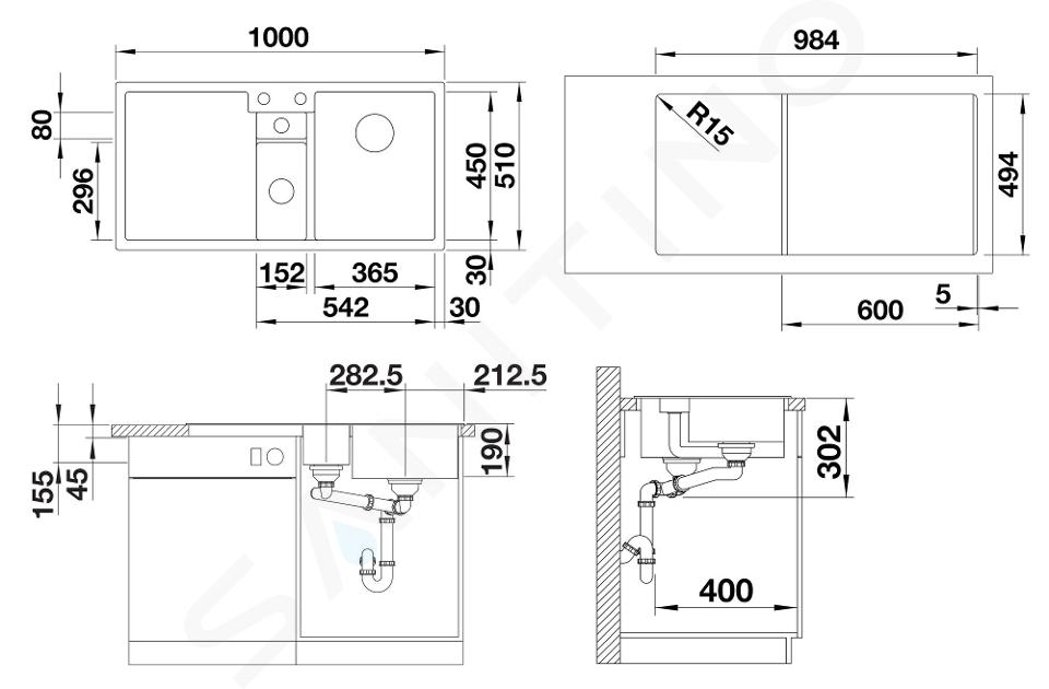 Blanco Collectis 6 je nádherný a veľmi elegantný kuchynský dvojdrez, ktorý si vás získa od prvého okamihu. Skladá sa z dvoch rôzne veľkých nádob – väčší drez sa nachádza vpravo a meria 365 x 450 x 190 mm, menšia drezová vanička má rozmer 152 x 296 x 140 mm. Celkový rozmer tohto dvojdrezu meria 1000 x 510 mm.
