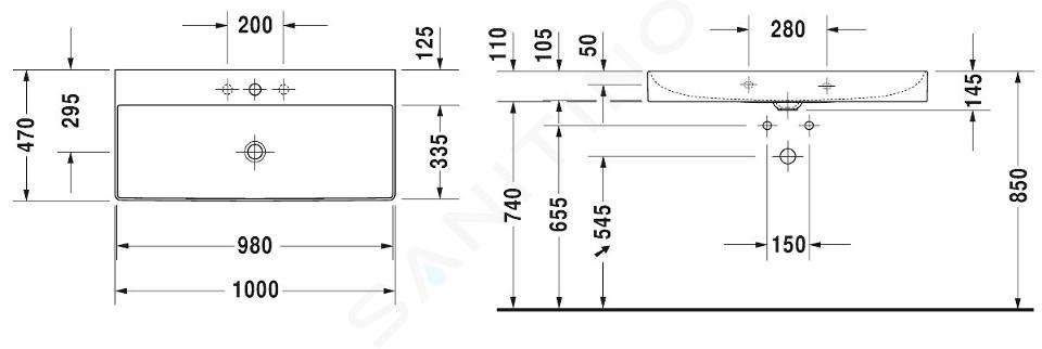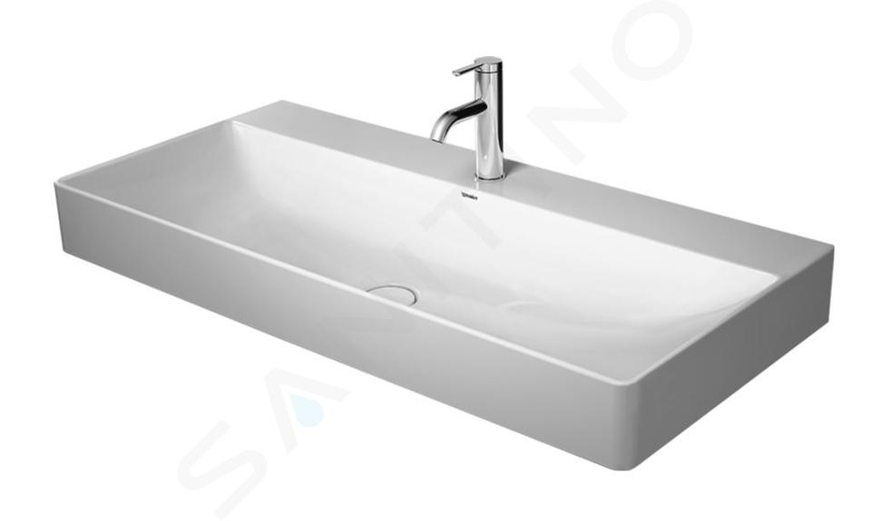 Biele závesné umývadlo bez prepadu Duravit DuraSquare má praktické využitie. S rozmermi 1000 x 470 x 145 milimetrov sa k nemu môžu postaviť aj dvaja ľudia. Je vyrobené z materiálu DuraCeram®, ktorý má skvelé vlastnosti. Je tenší ako štandardná keramika, ale vyniká extrémnou presnosťou, pevnosťou a elegantným povrchom.