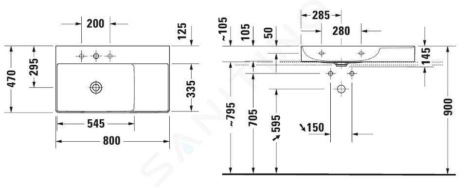 Asymetrické umývadlo bez prepadu