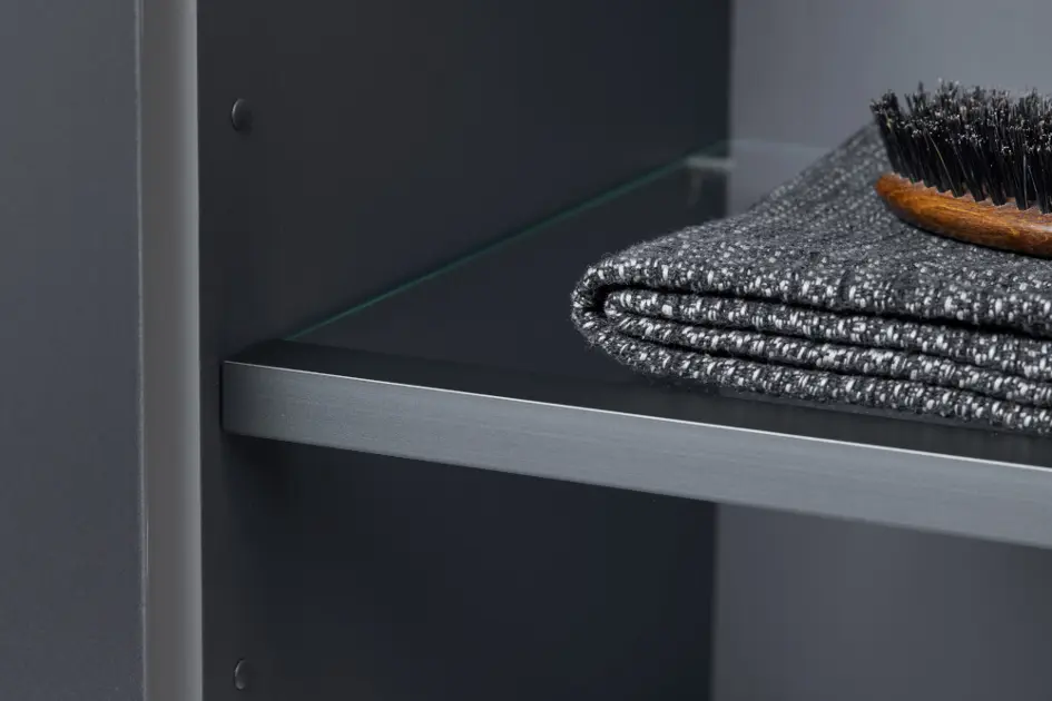 Čím méně rušivých elementů, tím lépe. Proto se umyvadlové skříňky L-Cube vyznačují minimalistickým vzhledem. Namísto dekorativního vzoru je zde bílý lesklý lak na povrchu vysoce kompaktní třívrstvé DTD. Chybí také úchytky: zásuvky disponují dotykovým samočinným otevíráním Tip-on.