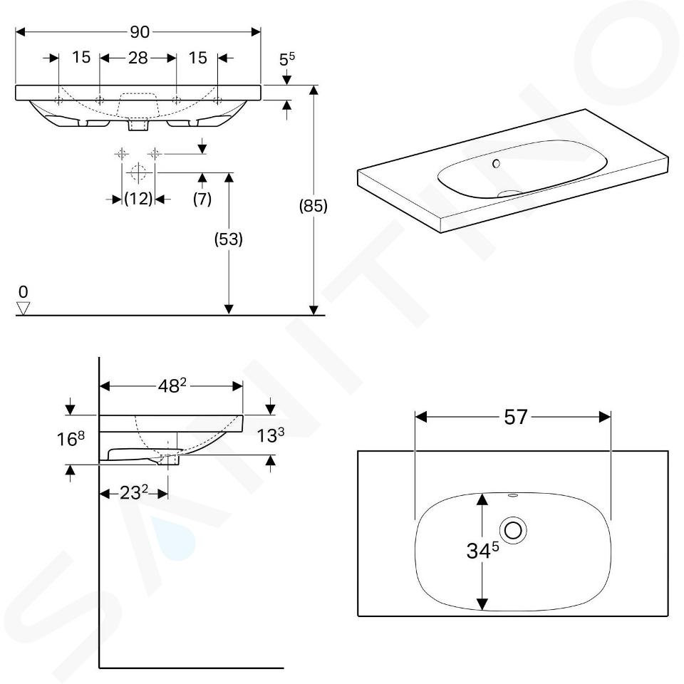 Umývadlo s prepadom as odkladacou plochou po stranách