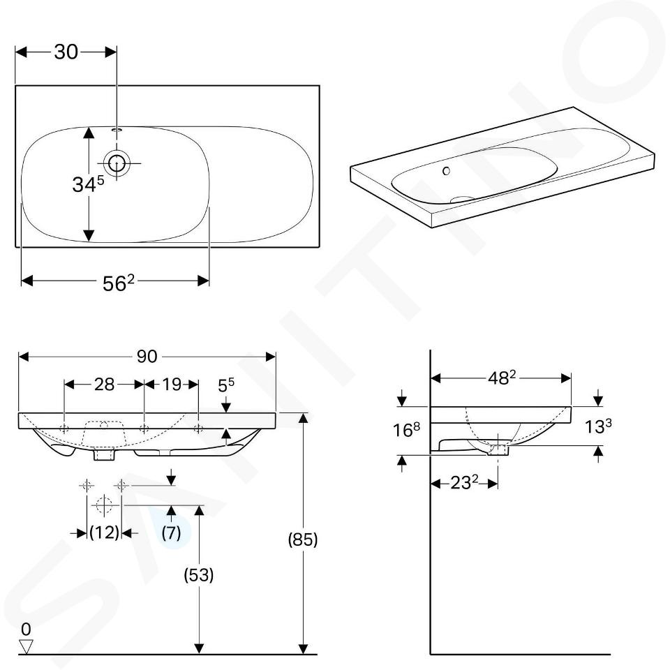 Umývadlo s prepadom as odkladacou plochou vpravo