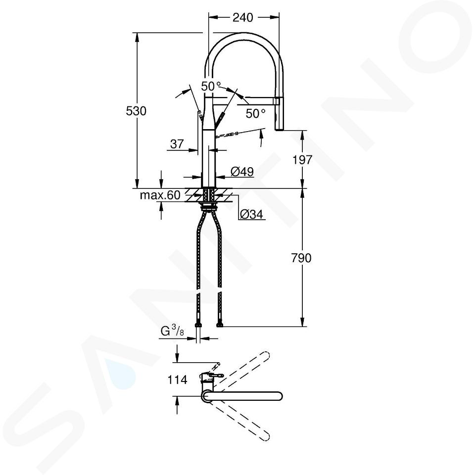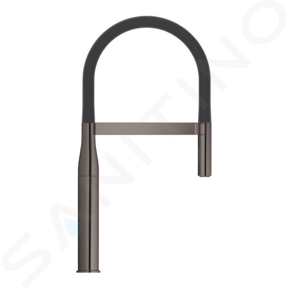 Drezová batéria značky GROHE s flexibilným ramenom predstavuje vrchol v oblasti kuchynského designu a funkčnosti. Je odetá v modernej tmavej Hard Graphite farbe. S jednootvorovou montážou a povrchom PVD, ktorý je odolný proti poškriabaniu a opotrebovaniu, je elegantná. Okrem toho je vybavená 28 mm keramickou kartušou SilkMove s integrovaným obmedzovačom teploty. Profesionálna spŕška a flexibilná hygienická silikónová hadica GROHFlexx v čiernej farbe umožňujú maximálne pohodlie a efektivitu pri umývaní riadu alebo čistení drezu.