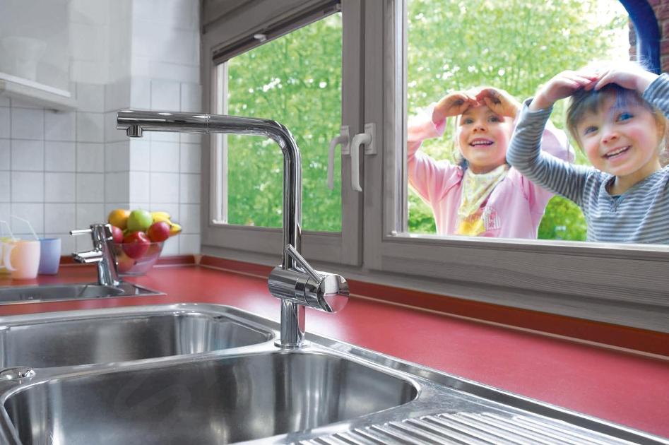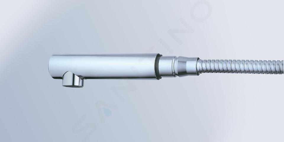 Tvar výtokovej trubice do "L" je nielen krásny, ale aj vysoko praktický. Dostatočná výška výtoku totiž umožňuje ľahký prístup do priestoru drezu a tiež bezproblémové napúšťanie vysokých nádob. Veľkou výhodou je tiež vysúvacia sprchová hlavica, ktorá vám dovolí umyť aj najväčšie zákutia zeleniny, ovocia, či riadu. Manipulácia s ňou je jednoduchá a hladká. Vďaka rozsahu otáčania 360° je možné túto batériu inštalovať aj na kuchynský ostrovček. Iste oceníte tiež hladké ovládanie páky, ktoré sprostredkúva keramická kartuša s technológiou GROHE SilkMove. Páková drezová batéria GROHE Minta dbá aj na ekologické a ekonomické hľadisko. Jej súčasťou je aj variabilne nastaviteľný obmedzovač prietoku.