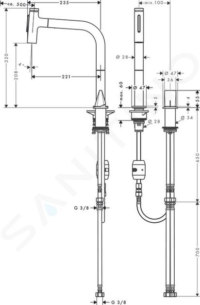 U kuchynských batérií sa ComfortZone rozvíja tromi smermi: výška batérie, otáčacia funkcia a vyťahovacia spŕška/výtok. Vysoký vývod ponúka u batérií obzvlášť veľký priestor a hodí sa ideálne k plneniu nádob. Vyťahovacia spŕška a vyťahovací výtok rozširujú rádius použitia batérie, čo je vhodné napr. na zalievanie rastlín atď.