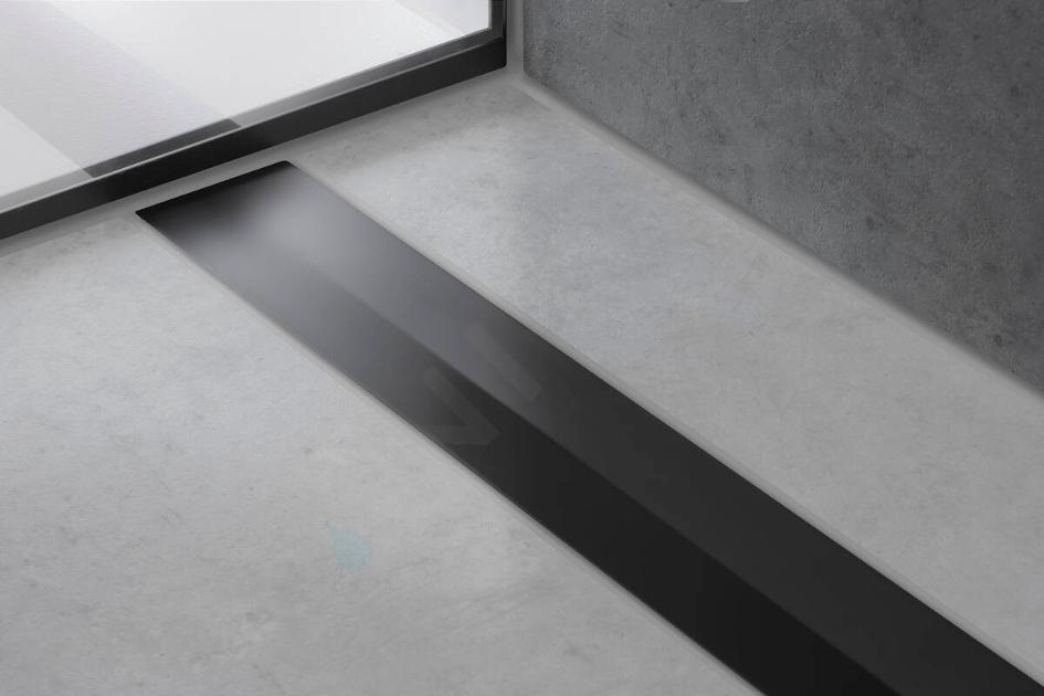 Luxusný čierny lineárny sprchový žľab do priestoru s variabilnou dĺžkou