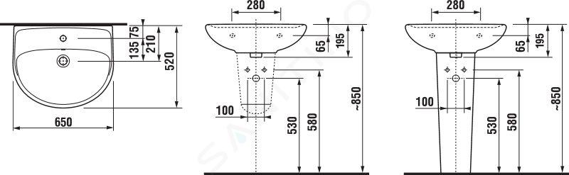Závesné umývadlo 65 cm, bez otvoru na batériu