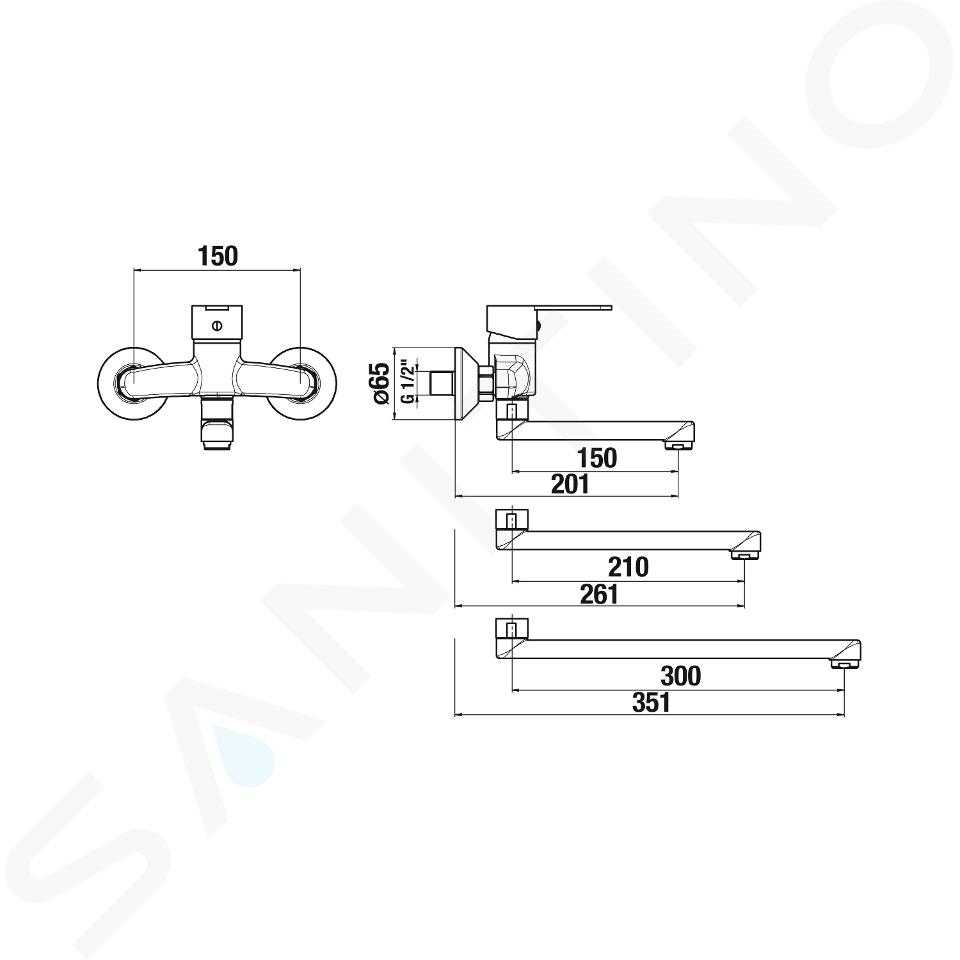 Nástenná umývadlová batéria, výtok 210 mm