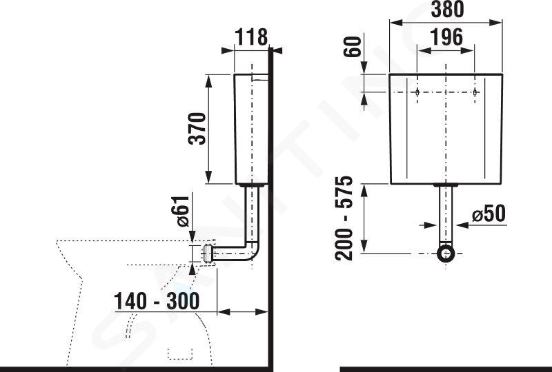 Splachovacia nádržka je nastaviteľná tak, že ju môžete nainštalovať nad klozet do výšky, ktorá vám vyhovuje (od 200 do 575 mm).