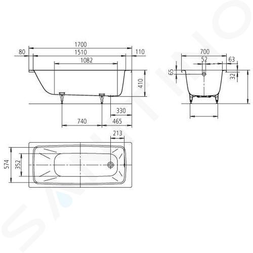 Vaňové nožičky a vaňový sifón nie sú súčasťou dodávky.
