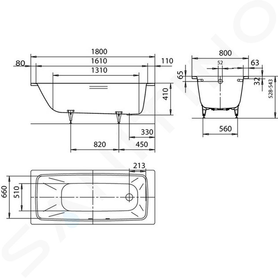 Vaňové nožičky a vaňový sifón nie sú súčasťou dodávky.