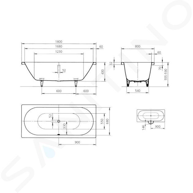 Vaňové nožičky, držadlo a vaňový sifón nie sú súčasťou dodávky, je potrebné objednať samostatne.
