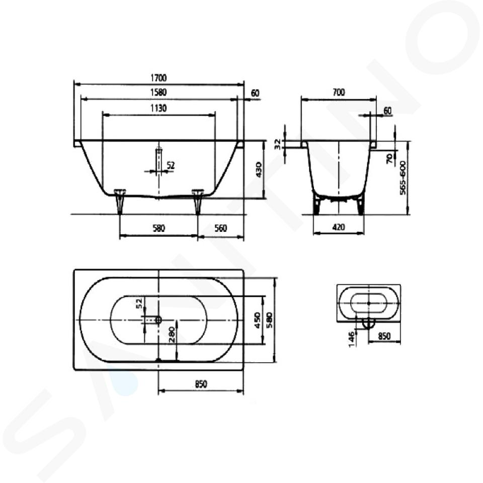 Vaňové nožičky a sifón nie sú súčasťou dodávky.