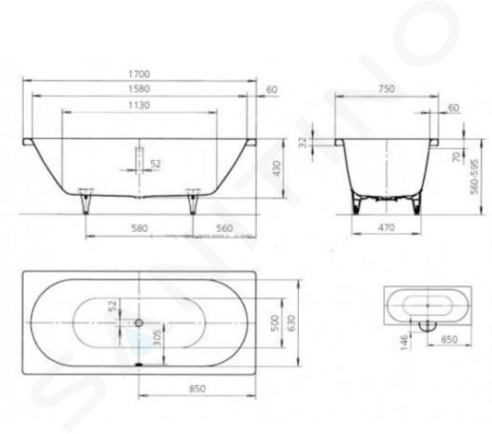 Vaňové nožičky a sifón nie sú súčasťou dodávky.