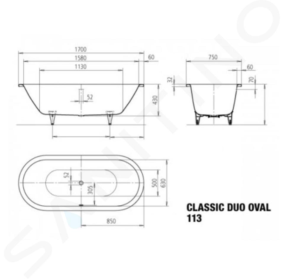 Vaňové nožičky a sifón nie sú súčasťou dodávky.