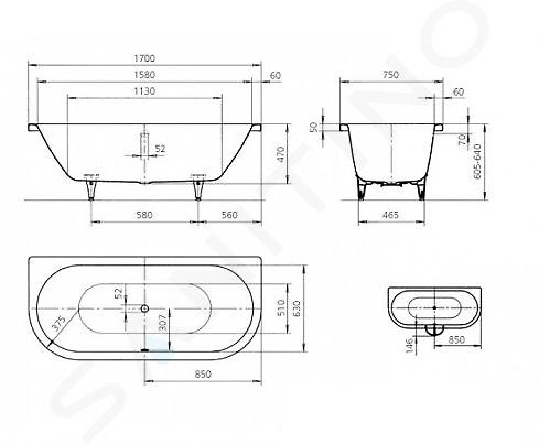 Vaňové nožičky a sifón nie sú súčasťou dodávky.