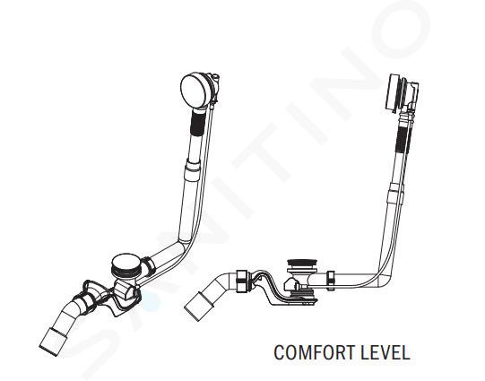 Odpadová a prepadová súprava Comfort Level KA4001 patrí medzi príslušenstvo k vani, ktoré vás milo prekvapí svojím moderným designom. Pôsobí veľmi decentne, pretože má malú výšku a malý priemer ovládacej krytky, ktorá vystupuje nad povrch len nenápadne. Diely sústavy, ktoré sú viditeľné, sú povrchovo upravené pochrómovaním, čo vyzerá veľmi elegantne. Táto odtoková a prepadová súprava vám poskytne jedinečnú možnosť zvýšiť si maximálnu výšku hladiny vody pomocou samostatnej páčky. Doprajte si maximálny komfort pri kúpaní a dodatočne si zvýšte hladinu vody až o 50 mm. Väčším ponorením tela tak získate väčšie uvoľnenie, relaxáciu a dokonalý pôžitok z kúpania.