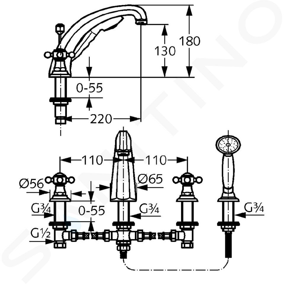 Batéria na okraj vane Adlon, 4-otvorová inštalácia