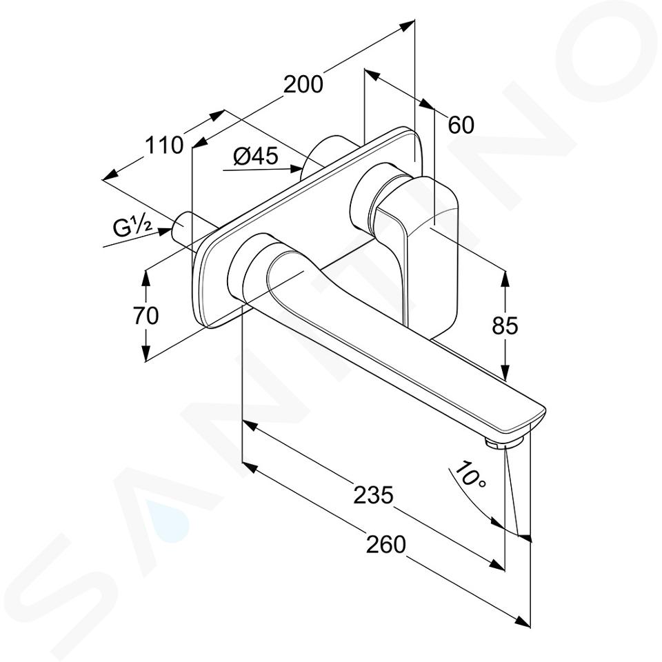 Kludi Ameo je batéria pod omietku, tým pádom výrazne šetrí miesto v kúpeľni. Okrem výtoku s dĺžkou 235 milimetrov a páky je všetko ukryté vo vašej stene. Stačí batériu inštalovať na podomietkové teleso. Toto teleso nie je súčasťou balenia, je potrebné ho objednať samostatne.