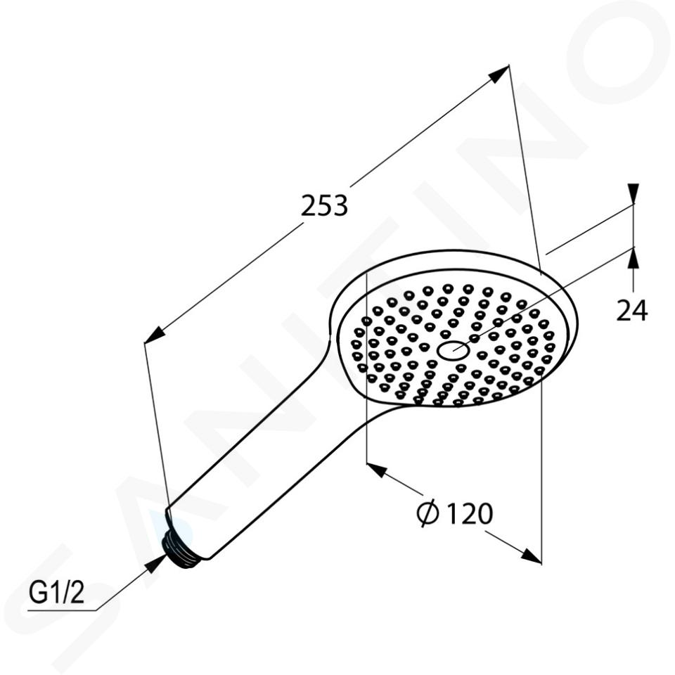 Ručná sprcha má prípojku G 1/2. Disponuje funkciou rýchleho čistenia vápenatých usadenín. Akékoľvek nečistoty sa totiž dajú jednoducho zotrieť, na hladkom povrchu nezostávajú.