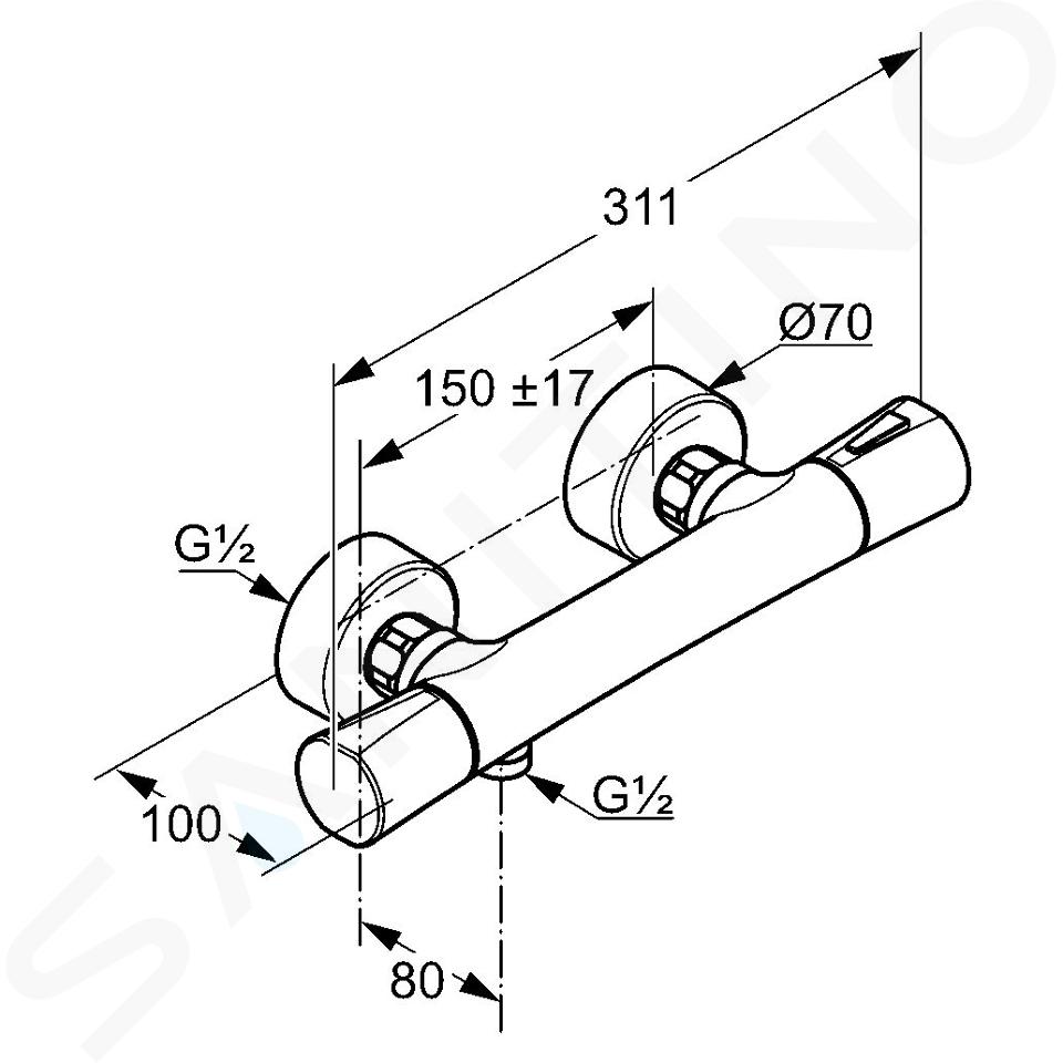 Termostatická sprchová batéria s nástennou inštaláciou zaujme nielen pôsobivým designom, ale aj svojím vynikajúcim výkonom. Má príjemné a intuitívne ovládanie teploty s bezpečnostnou zarážkou na 38 °C (technológia HotStop). Je vybavená sitkami na zachytenie nečistôt a zabezpečená proti spätnému nasatiu vody. Nechýba ani uzatvárací ventil.