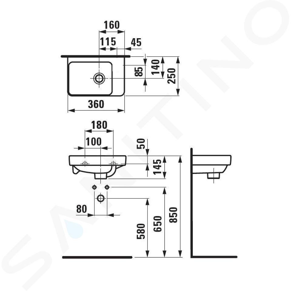 Asymetrické umývadielko bez otvoru pre batériu, s prepadom