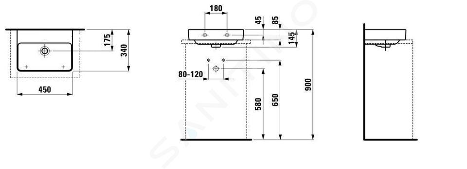 Umývadielko bez otvoru pre batériu, s prepadom.