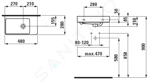 Asymetrické umývadielko pravé, bez otvoru pre batériu, s prepadom