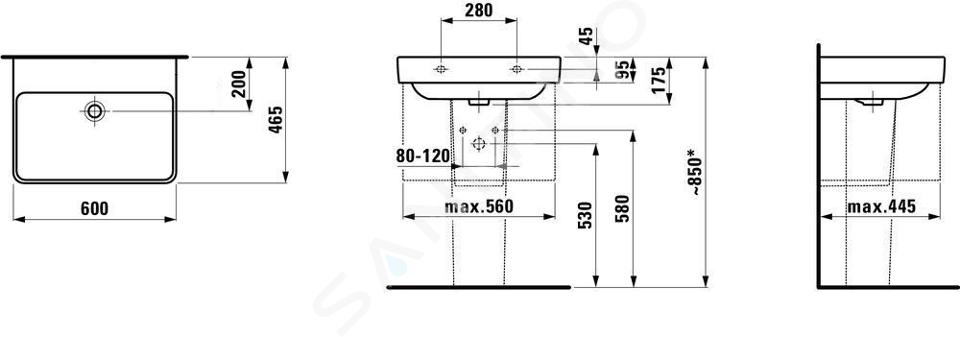 Umývadlo bez otvoru pre batériu, s prepadom.