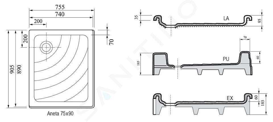 Sifón a nožičky k vaničke nie sú súčasťou dodávky.
