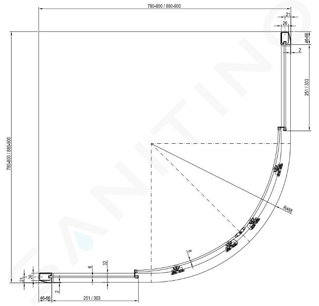 Nehynúcou klasikou kúpeľní sú štvrťkruhové sprchové kúty. V porovnaní s ostatnými tvarmi zaberajú najmenej miesta, pritom stále ponúkajú dosť priestoru na sprchovanie. To platí aj pre RAVAK Blix s inštalačnými rozmermi 780-800 x 780-800 mm. Výška je 1900 mm, šírka vstupu 490 mm. Ako ostatné výrobky RAVAK Blix, aj tento sa pýši voľbou kvalitných materiálov. Výplň z číreho bezpečnostného skla s hrúbkou 6 mm je zasadená do profilov z pevného kovu. Ich farebné vyhotovenie je lesklý hliník.