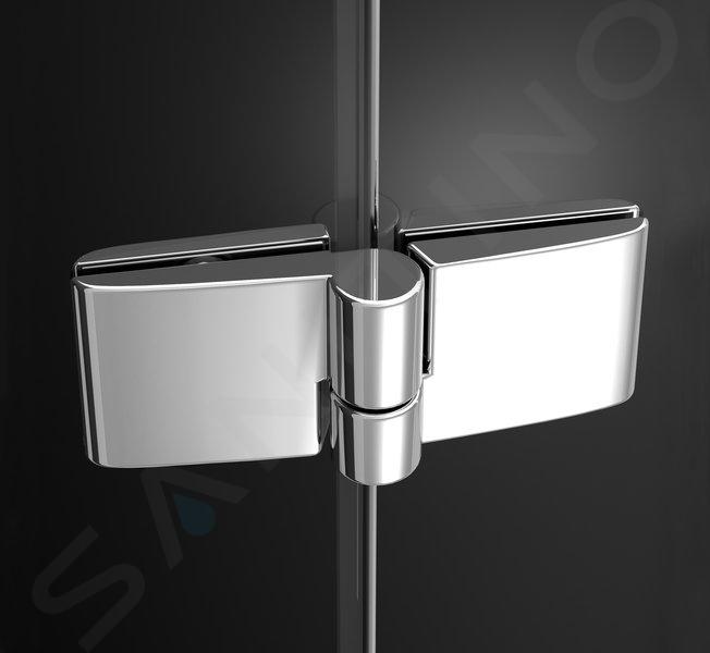 Čistá elegancia skla jemne zdôrazneného lesklými kovovými súčasťami podtrhuje vzdušný a ľahký dojem z celého sprchovacieho kúta.