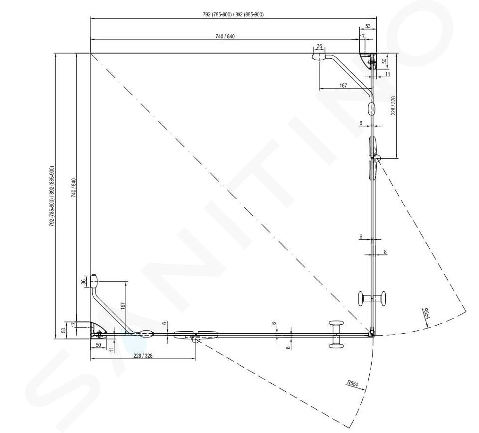 Ravak SmartLine je ideálny na montáž do obloženého rohu kúpeľne na vaničku alebo priamo na podlahu so zabudovaným odtokovým žľabom či podlahovým vpustom.