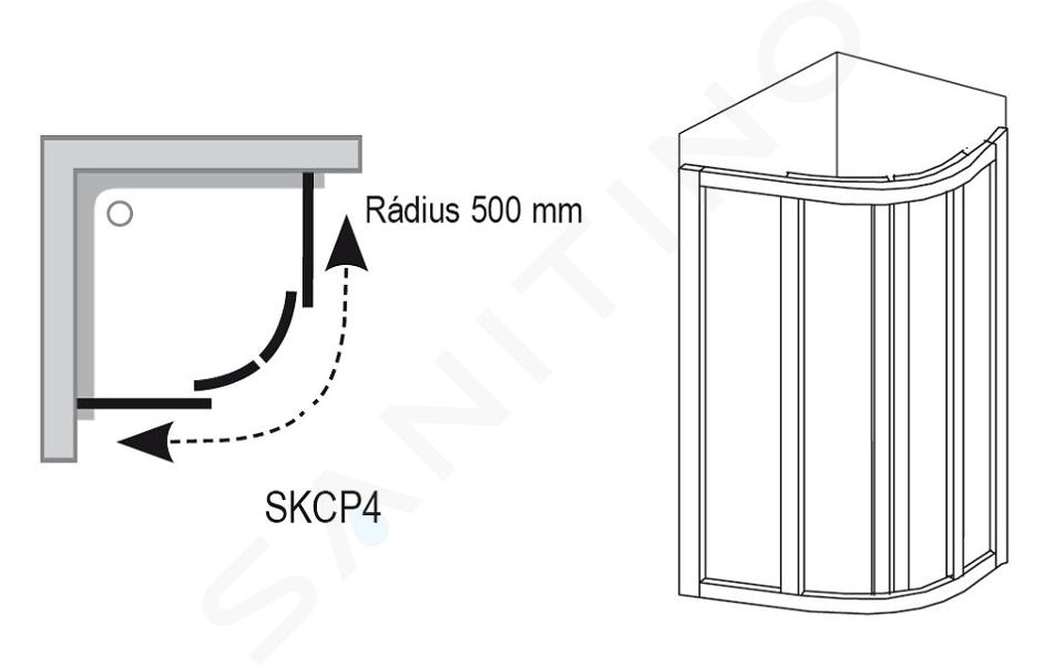 Štvrťkruhový sprchový kút SKCP4-90 Sabina, s posuvnými dverami