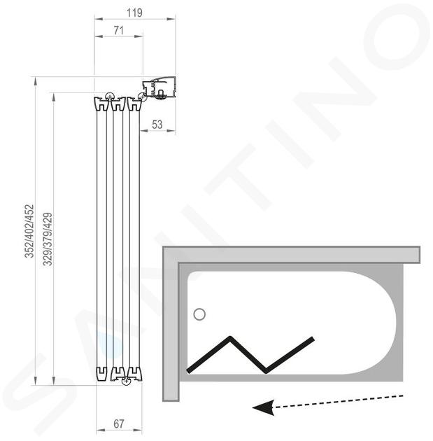 Vanová zástena skladacia, trojdielna