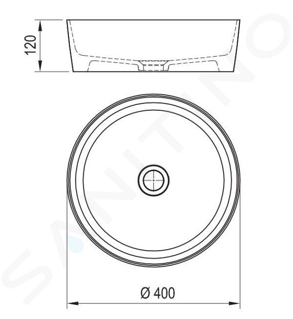 Na milimeter presne 400 milimetrov meria toto umývadlo v priemere. Uni je určené na inštaláciu na dosku. Dôležité je kombinovať ho s pevnou umývadlovou piletou, ktorá zabráni pretečeniu vody.