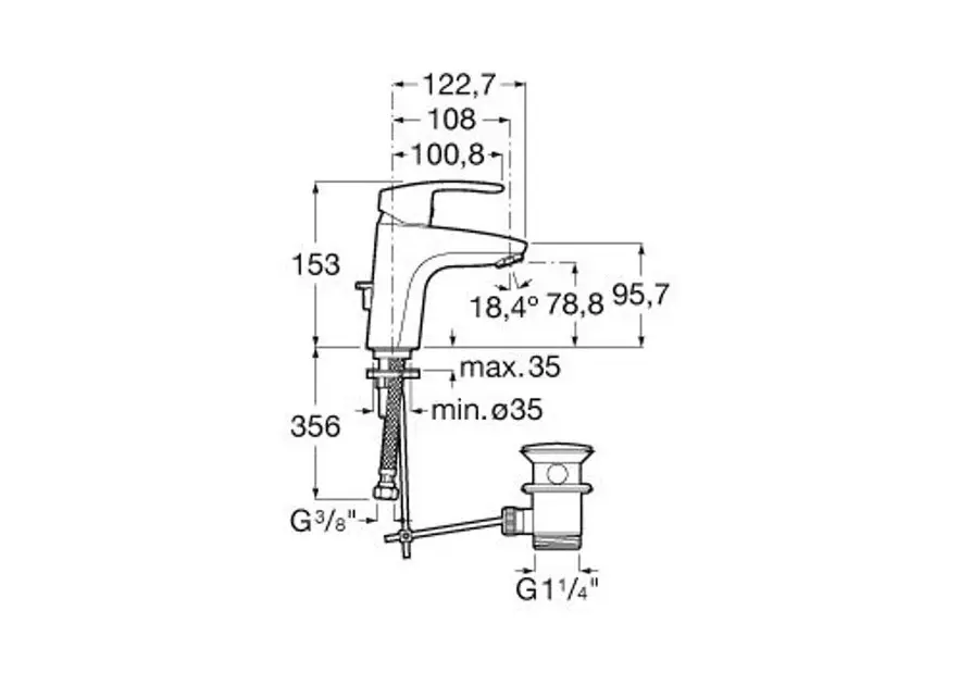 Umývadlová stojančeková páková batéria s automatickým výpustom, funkcia Cold Start