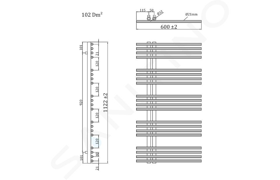 Vykurovacia tyč a pripojovacie ventily nie sú súčasťou radiátora. Je nutné dokúpiť.