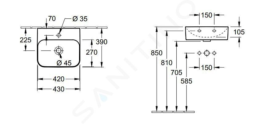 Umývadielko obdĺžnikového tvaru s CeramicPlus