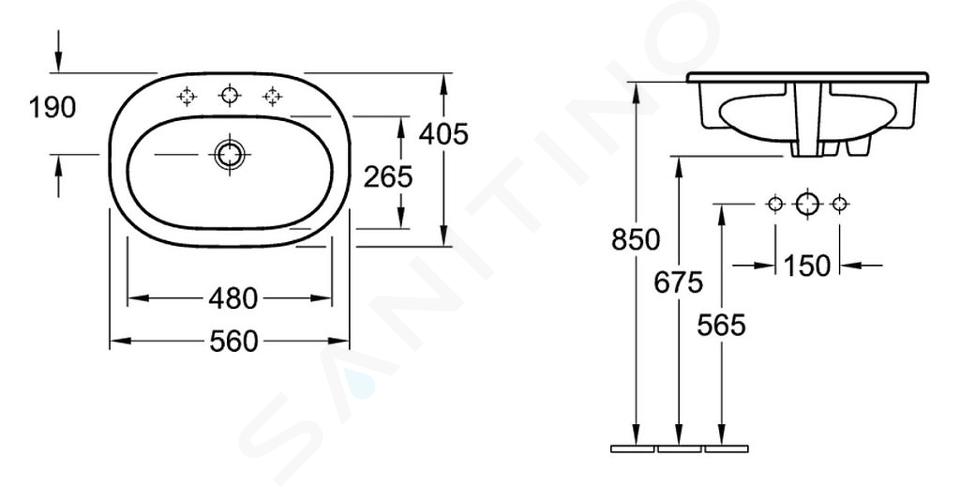 Zápustné umývadlo na dosku alebo kúpeľňovú skrinku