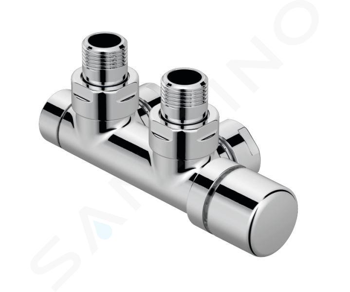 Armatúra v elegantnom chrómovom vyhotovení má rozstup pripojenia 50 mm. Disponuje prednastavenou ventilovou vložkou na termostatickú hlavicu M 30 x 1,5 mm. Vďaka by-passu ju môžete nastaviť na jednorúrkovú sústavu. Po montáži setu P platí prevádzková teplota do 110 °C a prevádzkový pretlak maximálne 10 barov.